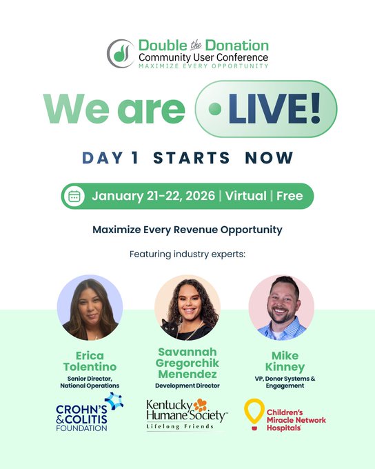 @2xDonations Welcome to Day 2 of the Double the Donation Community User Conference! 📣 Today is all about action and turning big ideas into practical results. Together, let’s continue building smarter, more effective workplace giving progrCgrkR