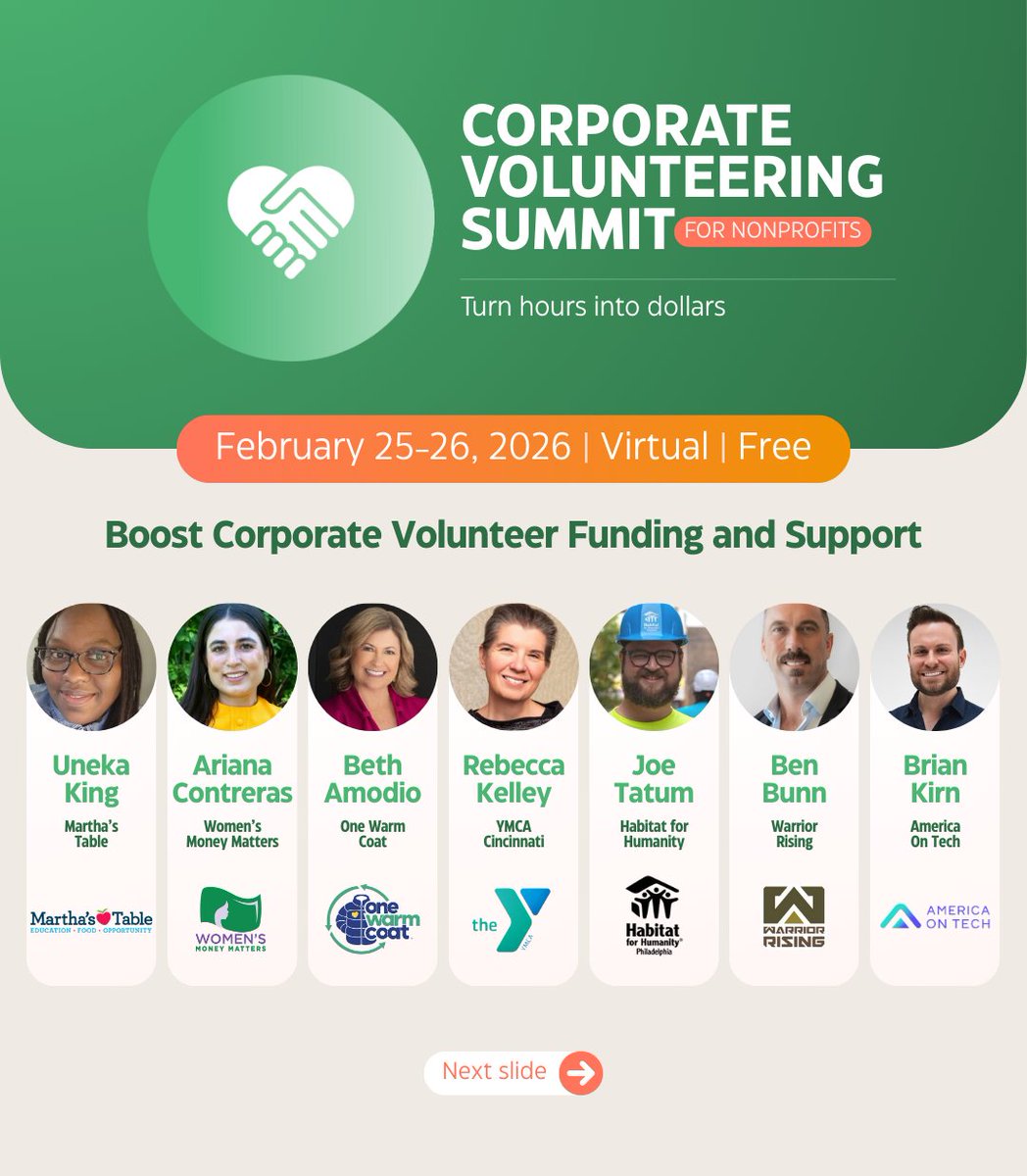 @2xDonations Two days. Five sessions. One clear path to corporate funding. Join us for the Corporate Volunteering Summit on February 25 to 26 for practical guides to driving greater impact through volunteer engagement. Register for FREE: hubs.la/Q03_kQx30